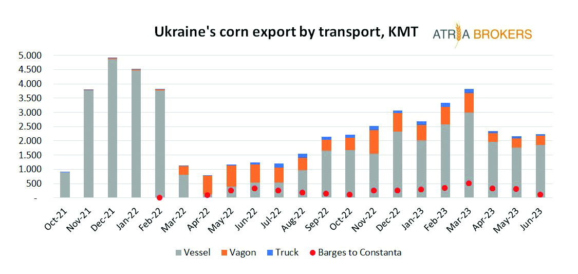 Coming month all market participants will watch precisely how the harvesting campaigns are performed in the US and the Black Sea. As well, prices in the Black Sea region will depend on the development of exports from the deep-sea ports of Ukraine. Will the corridor be done without Russia? Will China interrupt the situation at the start of corn export campaign 2023/24? At the same time, most prayers and actions are done for Ukraine to win the war, started by Russia, and relaunch its pre-war routes.