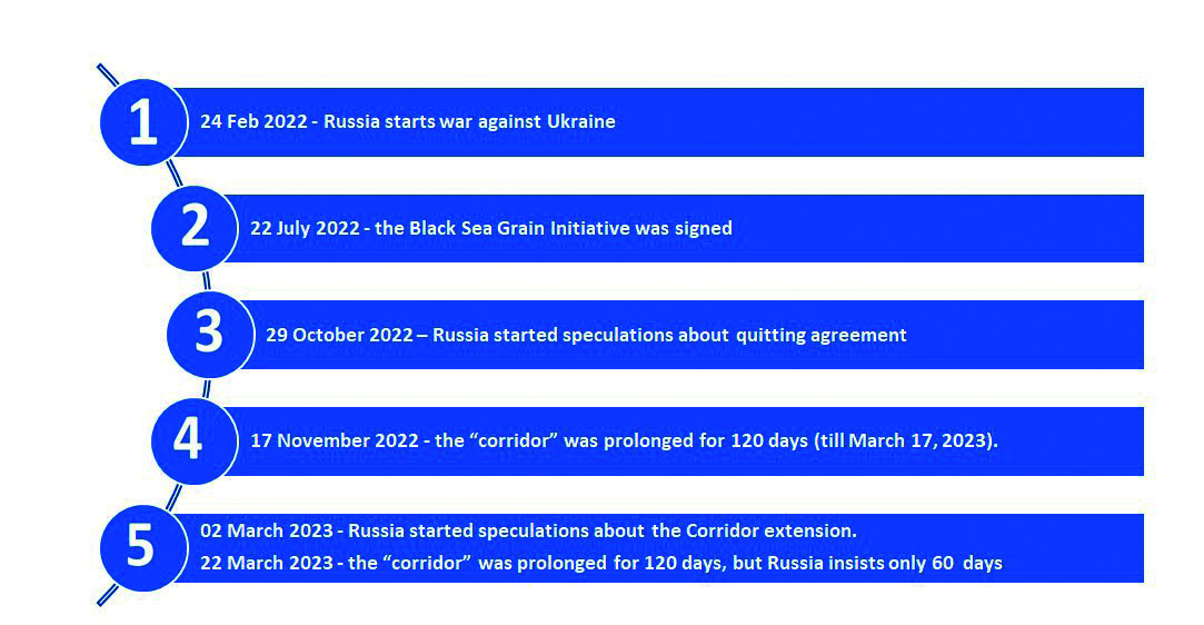The grain market was waiting for 18 March to get a clear understanding of the future of a grain deal allowing exports of Ukrainian grain from three ports of the Black Sea and brokered by the United Nations and Turkey in July 2022 and extended in November 2022 to fight with a world food crisis that became more frightening since the start of Russia’s invasion of Ukraine. However, currently, there are still blind spots on the deal’s future.
