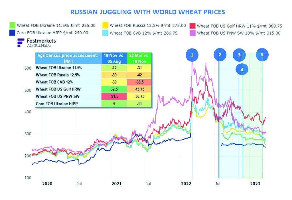 Each smart trader has its own price tools. The bigger the trader - the more global are the tools. In 2022, Russia invented its new tool in the form of war against another grain giant – Ukraine. Prices for all major commodities rerouted their way. The Grain Corridor became the sluiceway for Ukrainian grains, and Russia feels like a commander, telling prices to make pushups. On 18 March, the deal was prolonged, however, it has not provided support to the prices, as Russia said it wanted the agreement to be extended for 60 days instead of 120 days, that is painful for Ukrainian exports, and still, there is no clear official information about the period of the deal validity.