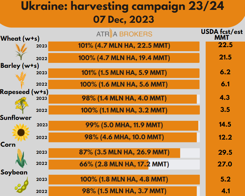 Progress of harvesting campaign in Ukraine as of 07 Dec, 2023