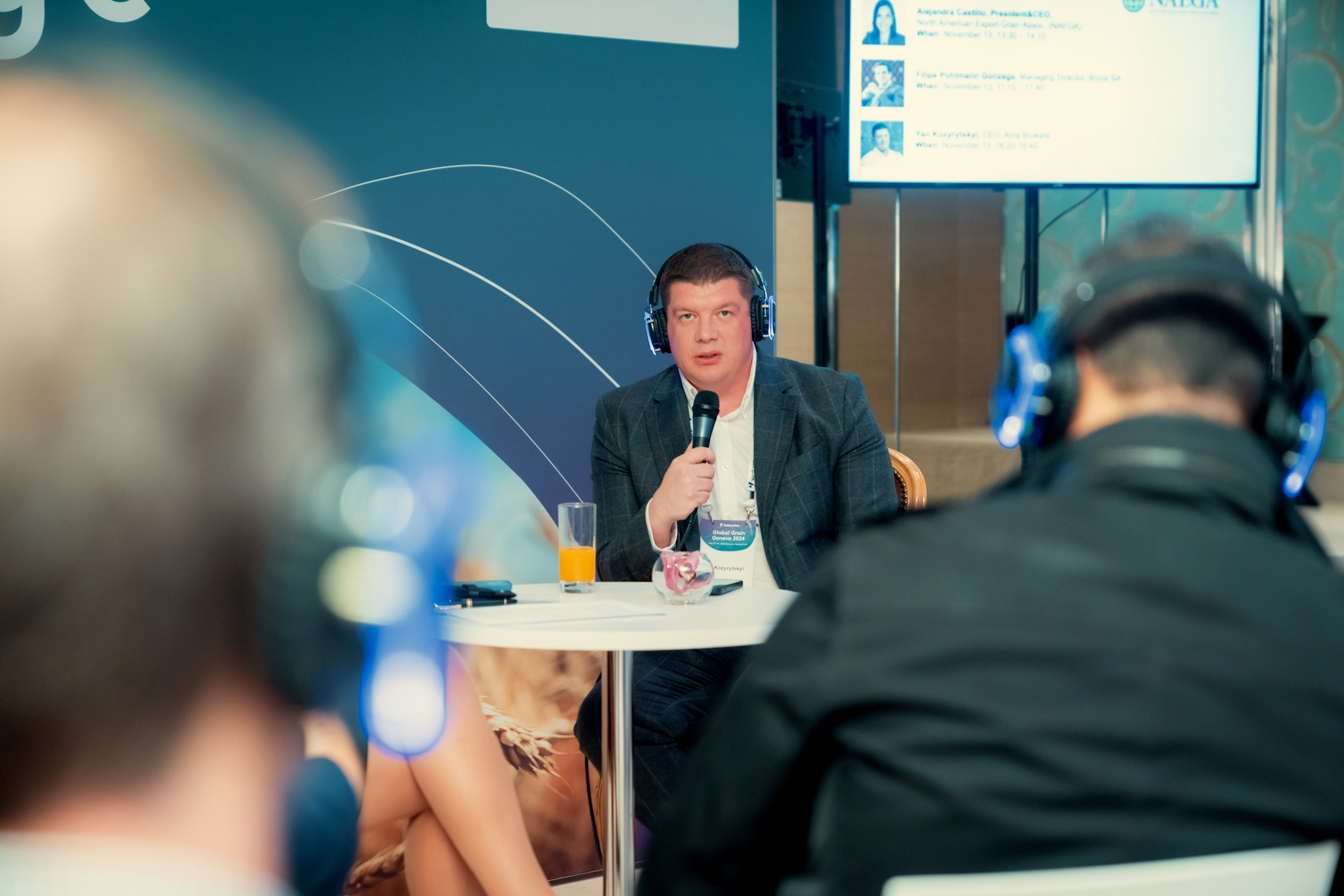We not only attended the event but also actively participated as speakers. One of the highlights was a podcast featuring Yan Kozyrytskyi, CEO of Atria Brokers. In the podcast, he discussed the current challenges of the Ukrainian agricultural market and its development prospects in an innovative “quiet format.” Yan shared how Ukraine, despite the ongoing war, continues to effectively tackle challenges and maintain its export potential.
