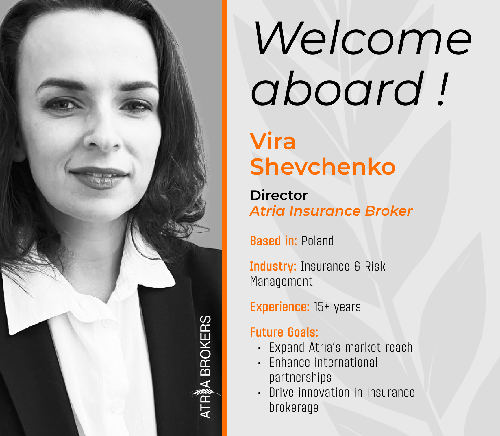 With her extensive expertise in the Ukrainian and Polish insurance sectors, Vira exemplifies Atria’s core values of commitment, professionalism, and a client-centric approach. We are confident that under her leadership, our company will continue to thrive and provide outstanding service within the insurance brokerage industry.